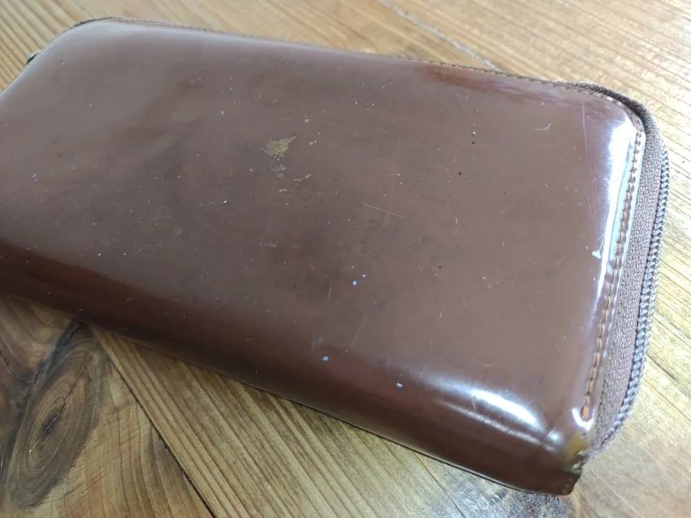 ガラスレザー調の長財布です。前回に続き、ファスナーです。