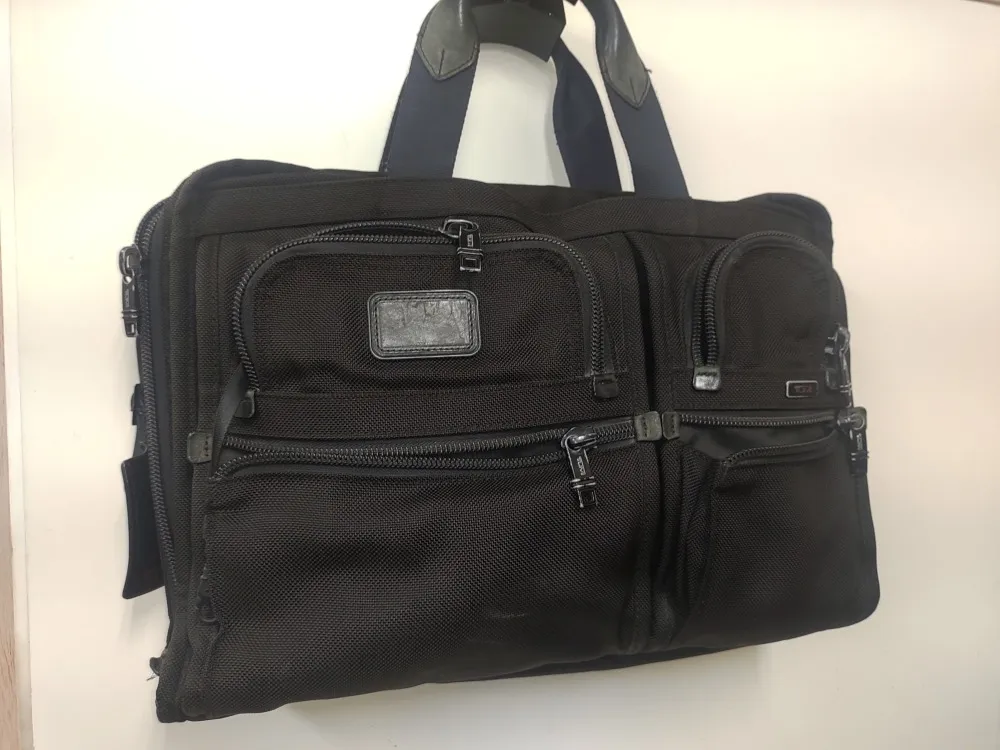 TUMI(トゥミ)です。かばんです。2枚目の画像をごらんの通り持ち手部分がボロボロです。ですが、本体側は目立った破れ等はあまり見当たりません。頑丈ですね。それだけに持ち手の革部分が目立ちます。