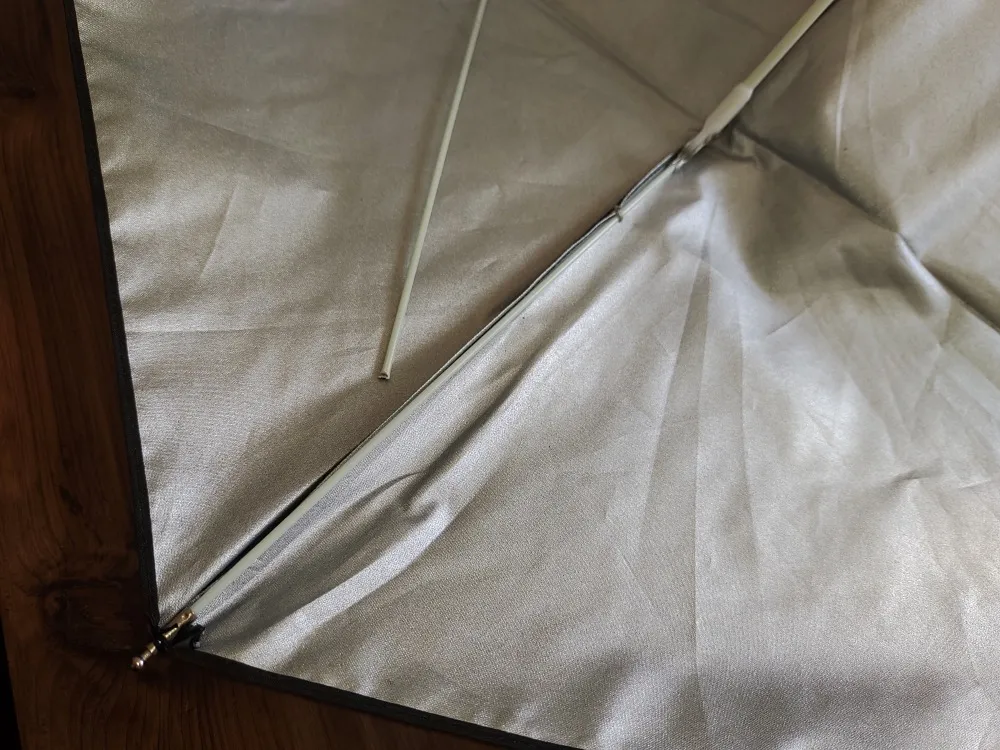 傘です。相変わらず傘修理は写真を撮り忘れがちです。ダボと呼ばれる関節付近で白いグラスファイバーの骨が折れています。傘の骨の材質は一般的に、金属(鉄・アルミ)やグラスファイバーが使われています。どの材質がいいかは一長一短です。鉄やグラスファイバーをミックスさせて作られている傘も多いです。