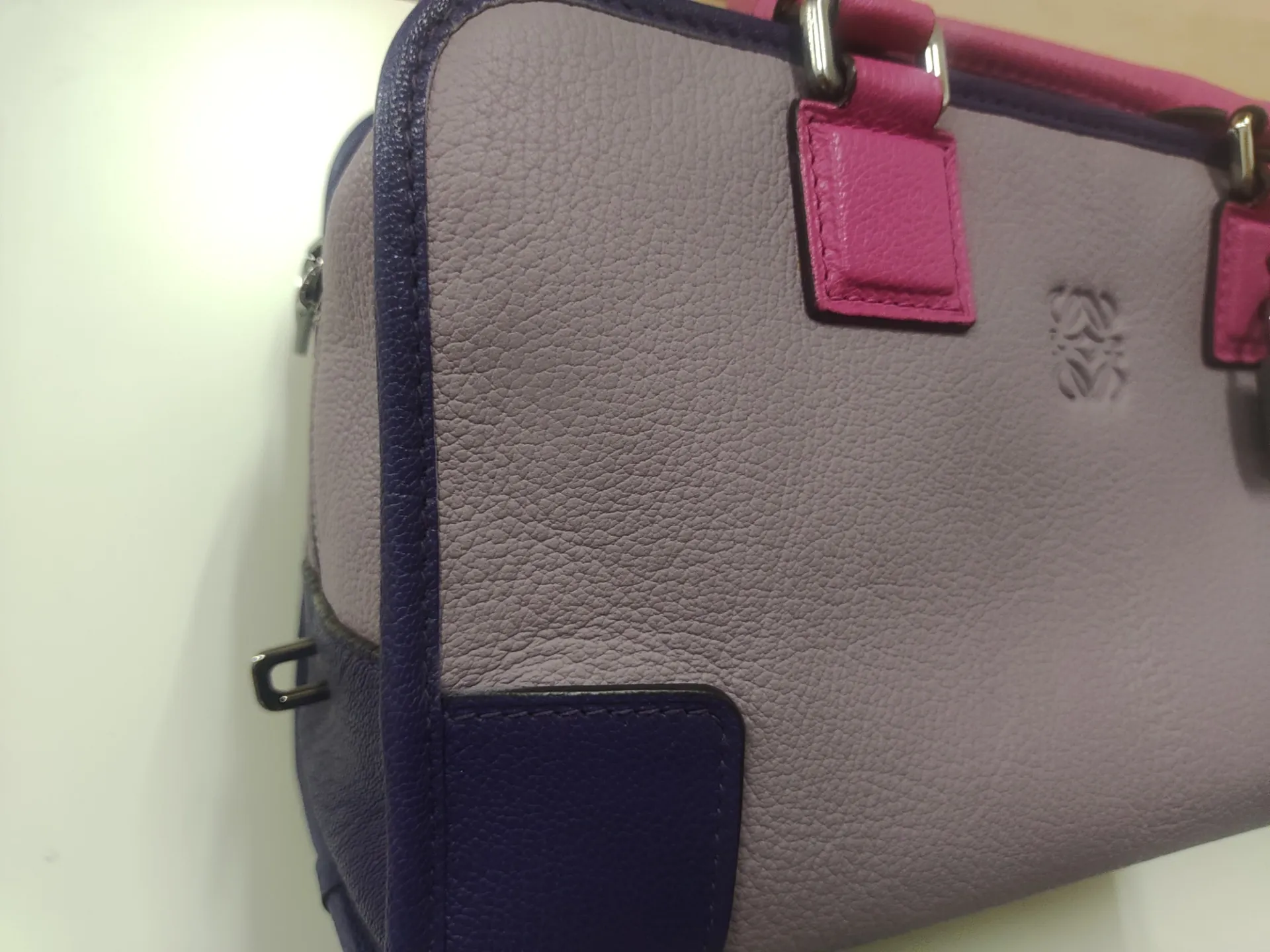 印象に残りやすい配色をしているロエベ(LOEWE)のハンドバッグです。画像中央あたり(鞄の正面左端あたり)が色ハゲしています。若干茶色くなっている箇所です。クリーナーを使用したら色落ちしてしまったらしいです。市販されているクリーナーだと通常は色は落ちないのですが、もしかしたら少しだけ強力なタイプだったのかもしれません。
