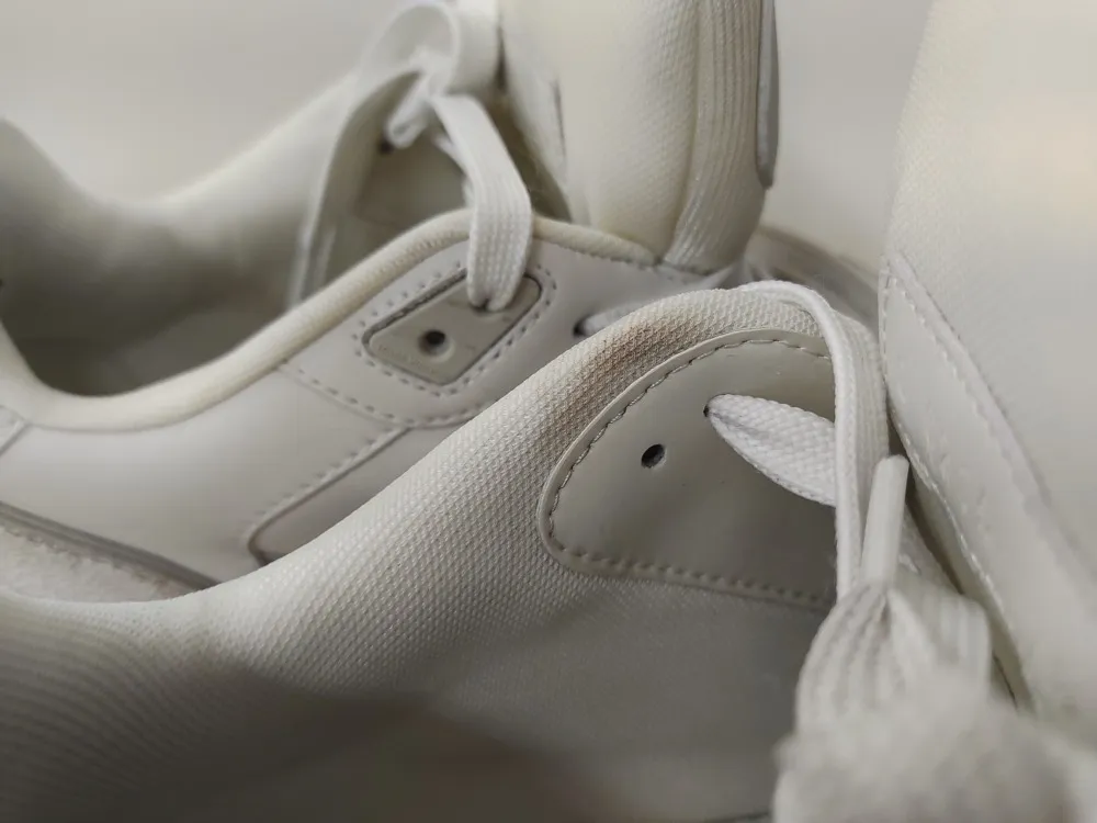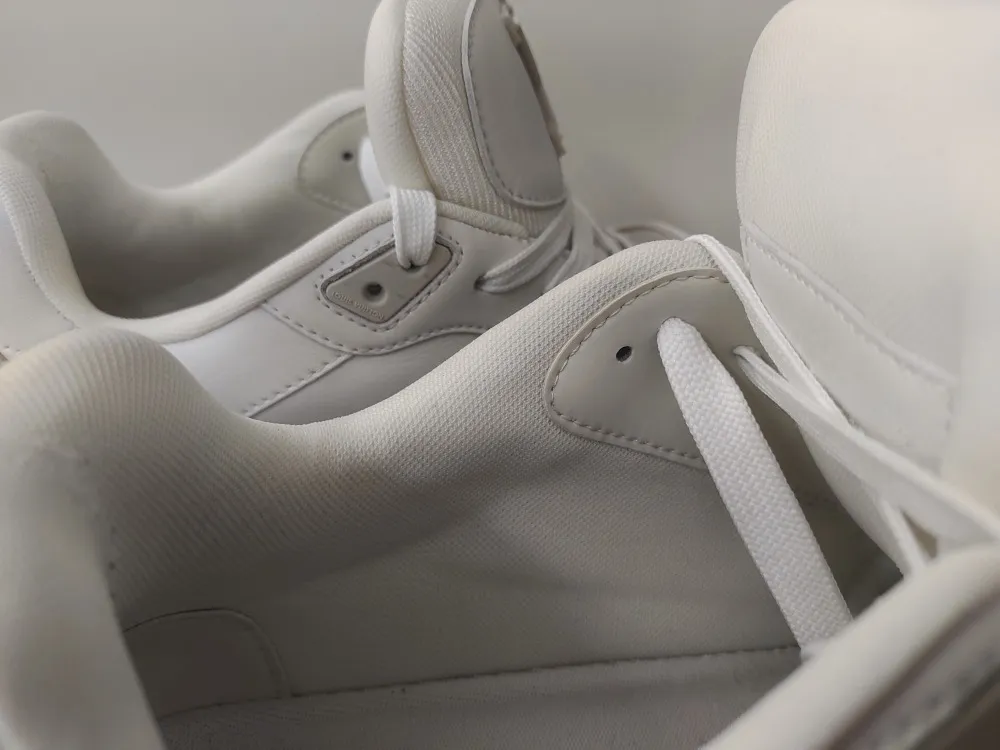 LOUIS VUITTON(ルイ・ヴィトン)のスニーカーに血が付いたということでご来店されました。2枚目の画像の中央あたりがうっすら汚れています。どこに血がついているのかと思う程度です。靴擦れをして滲み出た血がついたようです。血であることには違いないので、若干の不安を抱えながらお預かりします。