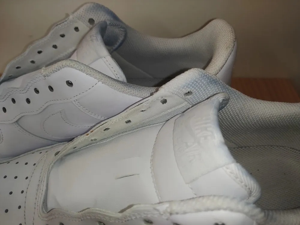 Nike(ナイキ)の白いスニーカーです。今回は汚れではなくてジーンズの色移りです。デニムは染色した後、色止めをあまりしないため、洗濯すれば色落ちすることは知っている人も多いと思います。でも、色移りまで気がなかなか回らないですよね。ジーンズと白いスニーカーは混ぜるな危険ですね。