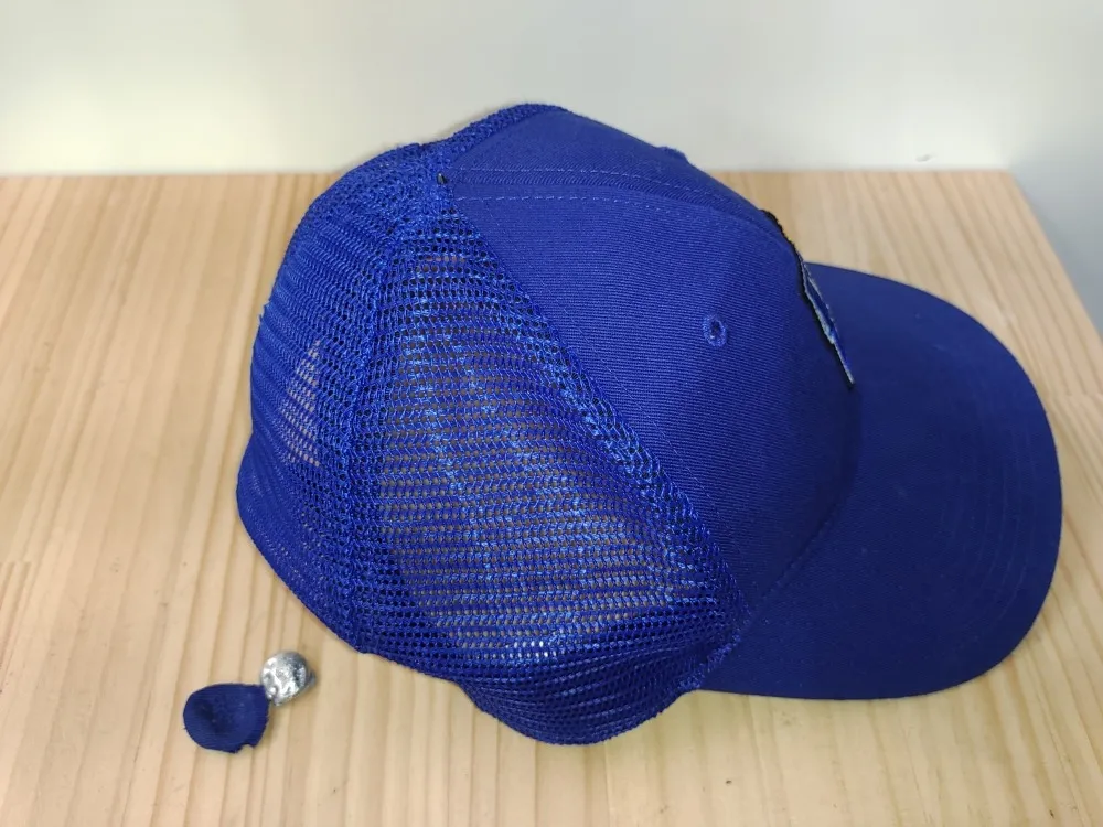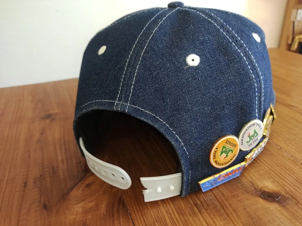 今回は変わり種の帽子の修理です。バッチがいっぱい付いてオシャレでしっかりとした作りのキャップです。キャップのアジャスターである白いプラスチックが割れています。洋服の修理屋さんで断られたよう…