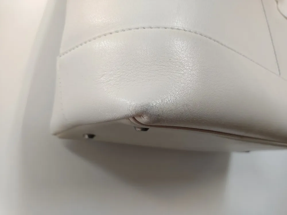 鞄の持ち手やカドの色はげが気になる 上3つの画像の白いカバンですが、目立った汚れもない奇麗な状態です。ところが、色ハゲが角の部分や持ち手を中心に見られます。普段使いする以上、避けられない悩みかと思います。そんなカバンをカラーリ…